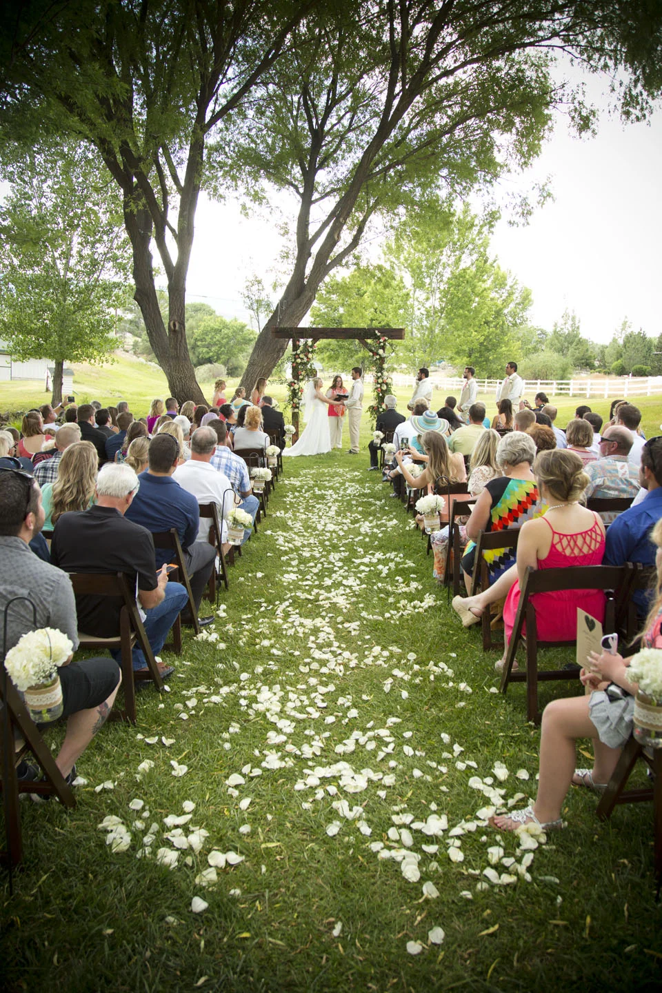 Tom and Resa's wedding was like a woodland fairy tale. The green and gold colors with the fairy tale theme made for a truly magical evening in one of my favorite places in Reno, Galena Creek Park. Resa was beside herself with happiness, giggling during the pictures and the ceremony. The sweetest part was when Resa's son walked her down the aisle and gave her away. Almost half of the guests were kids, which added to the fun and overall whimsical feeling of the wedding.